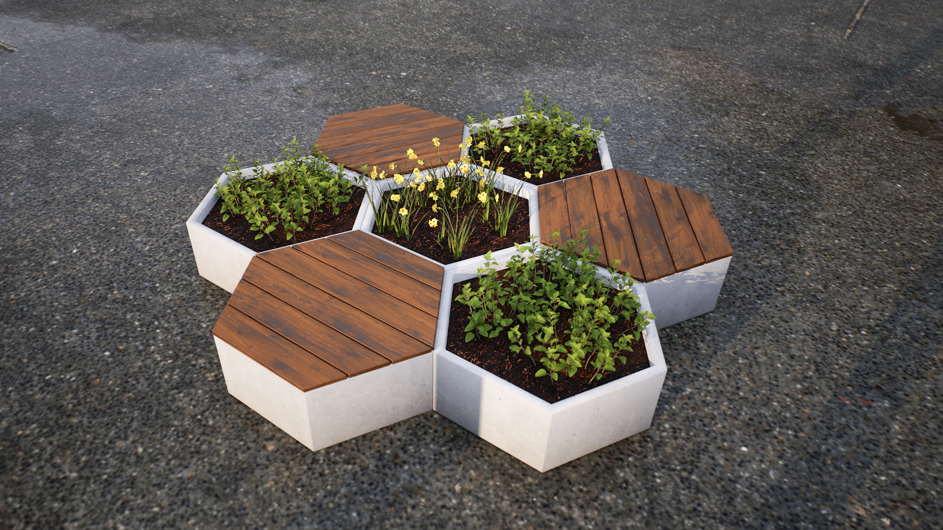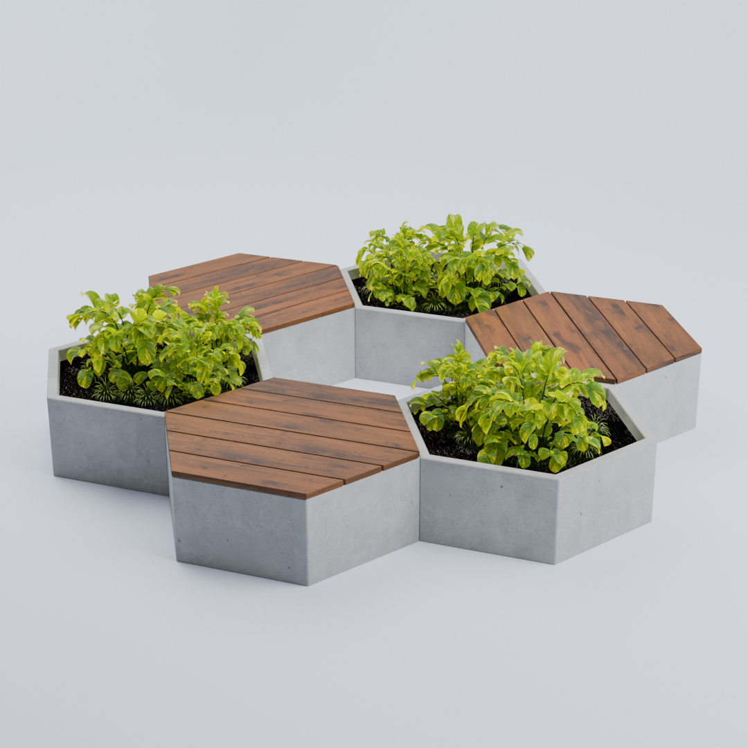 Vďaka svojmu tvaru je možné lavičku používať samostatne alebo kombinovať viaceré prvky dohromady. Môže zároveň slúžiť aj ako kvetináč – ideálne miesto pre vaše obľúbené rastliny a kvety.