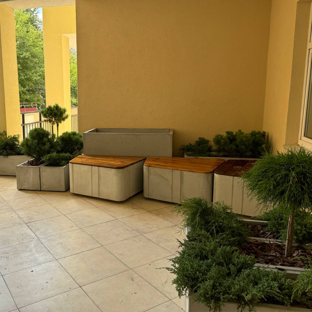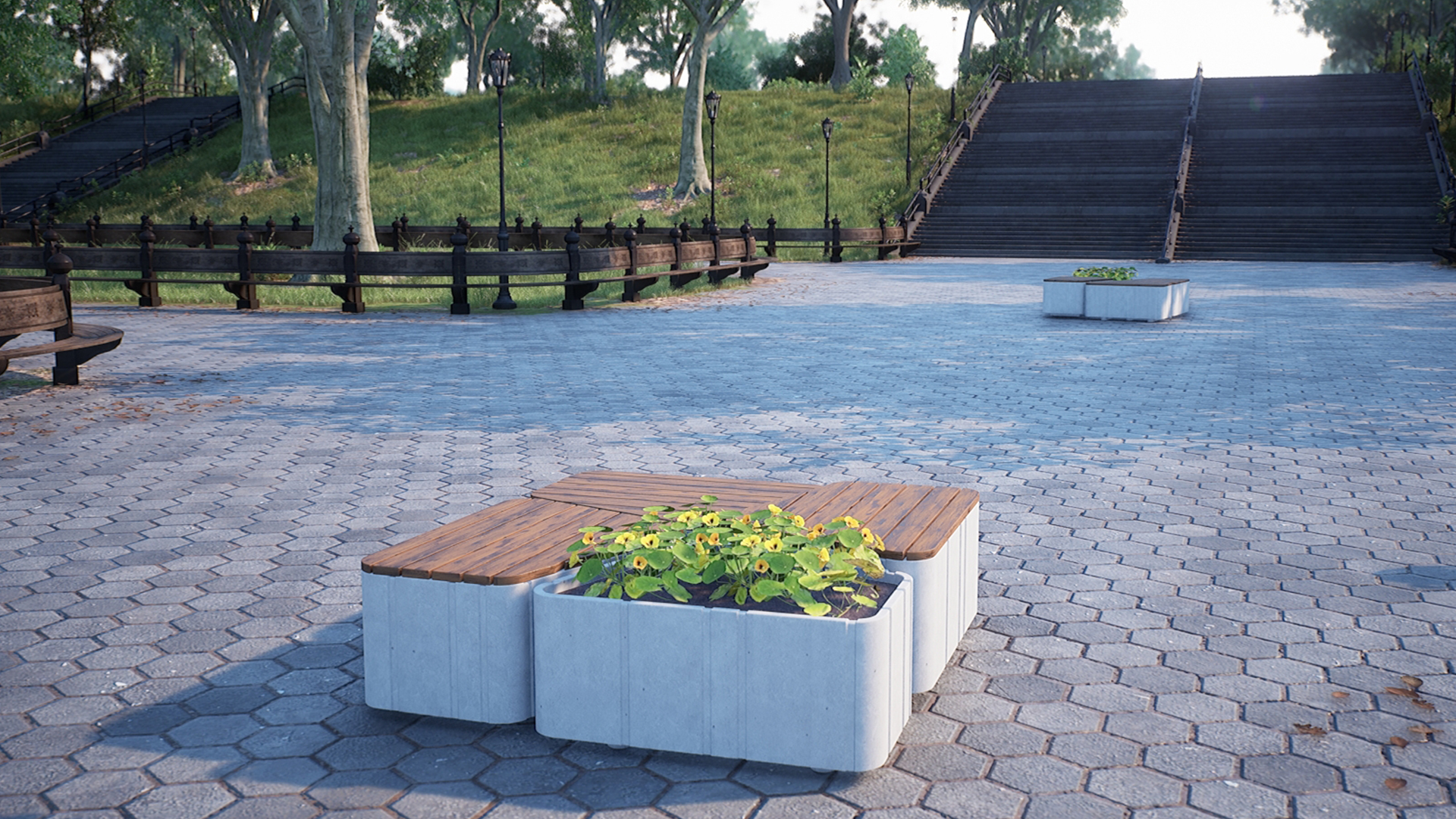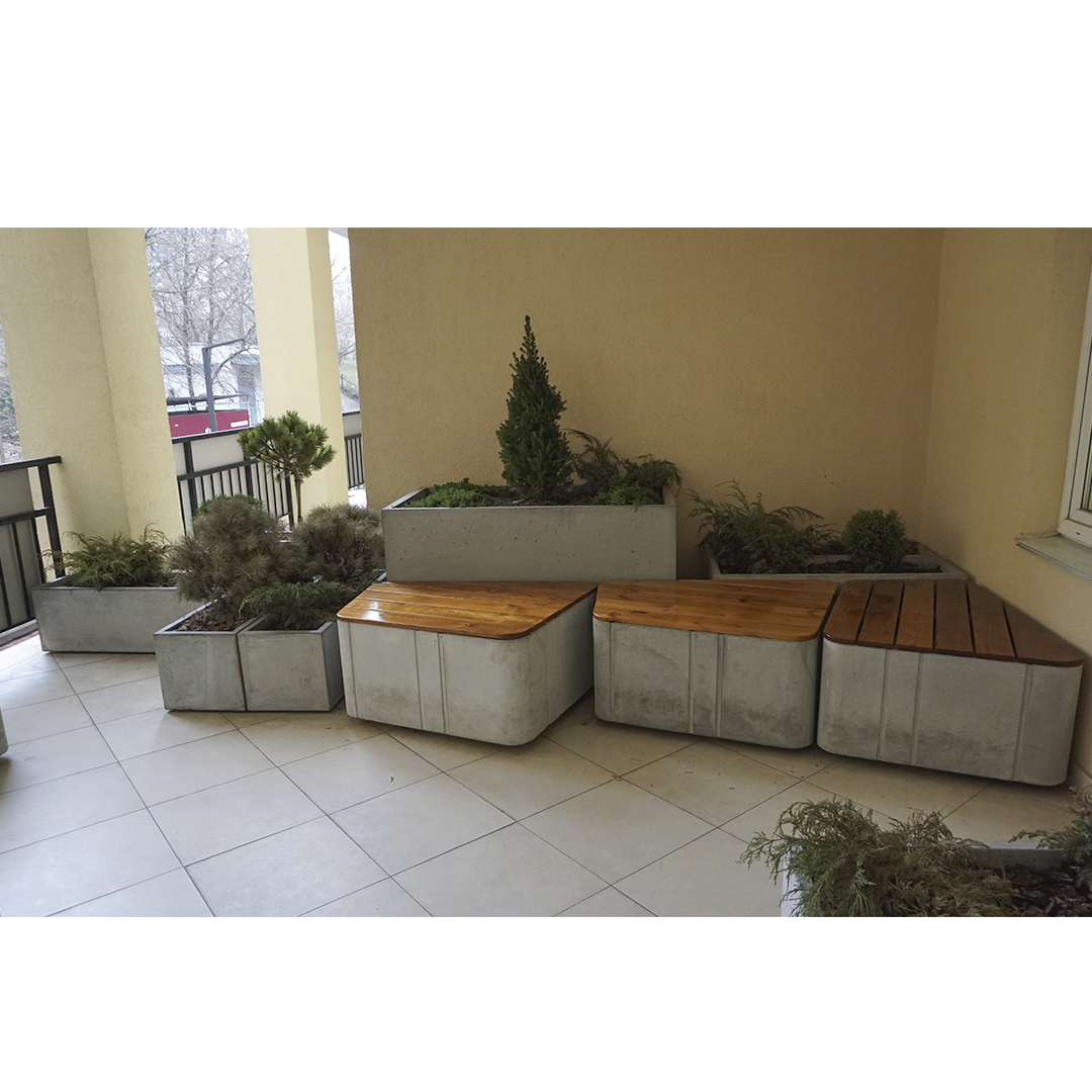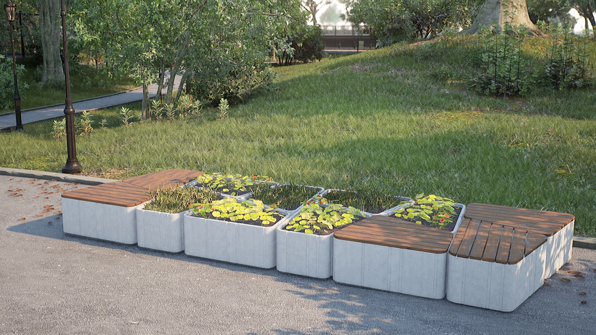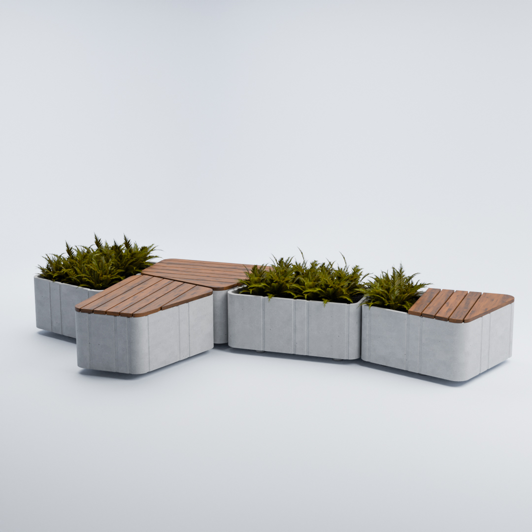 Vďaka svojmu tvaru je možné lavičku používať samostatne alebo spájať viaceré prvky dohromady. Môže zároveň slúžiť aj ako kvetináč – skvelé miesto pre vaše obľúbené rastliny a kvety.