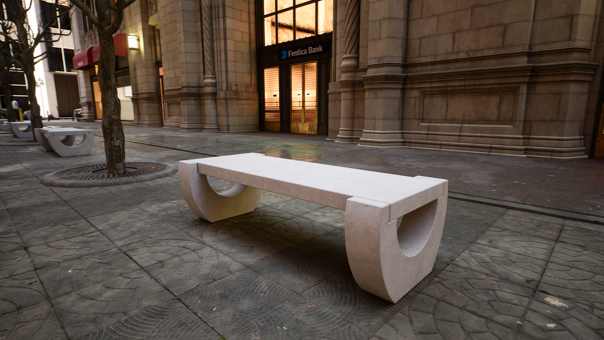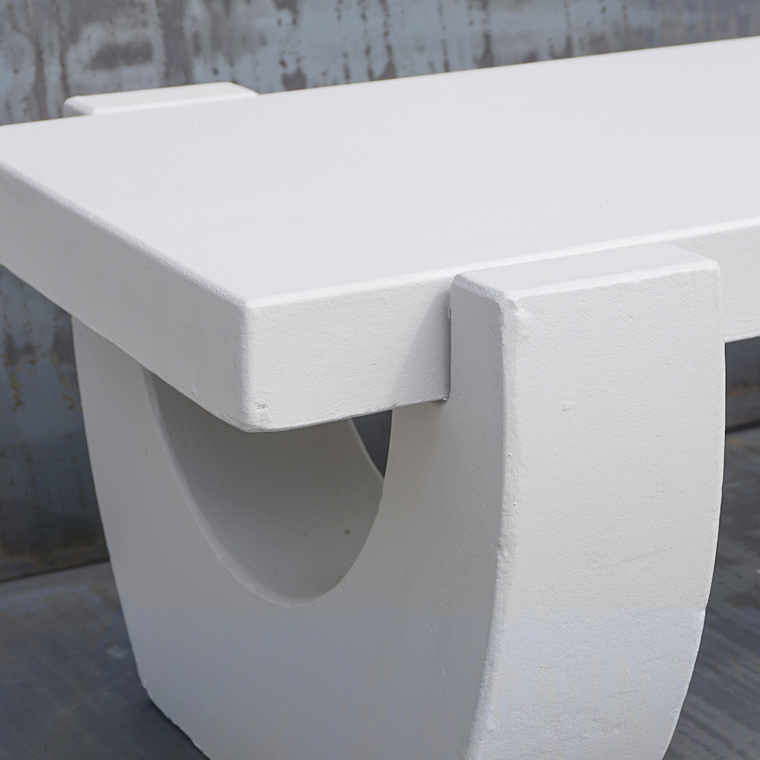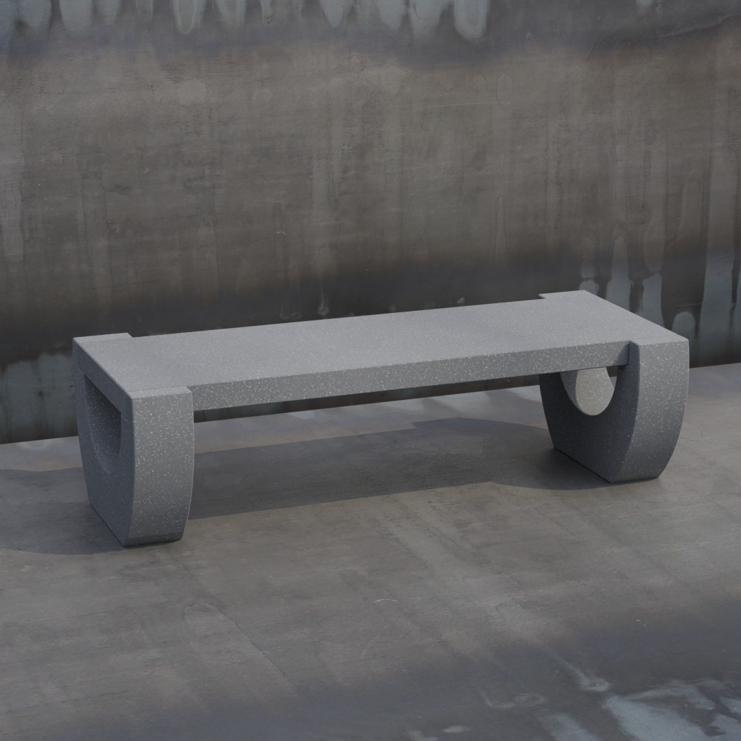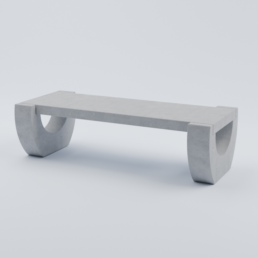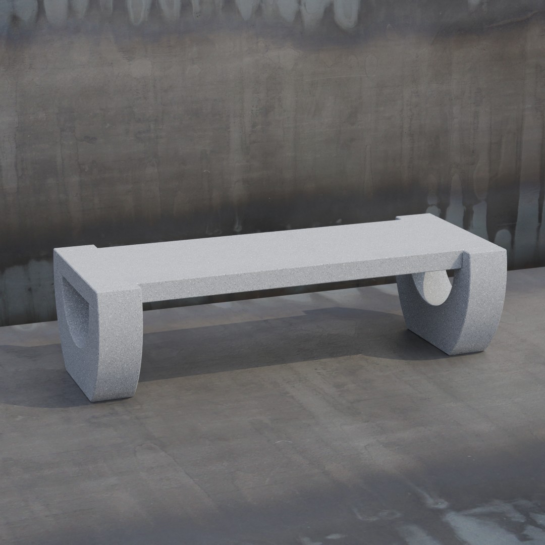 Lavička je úplne vyrobená z betónu, jej povrch je bez drsnosti, opracovaný do dokonalej hladkosti.