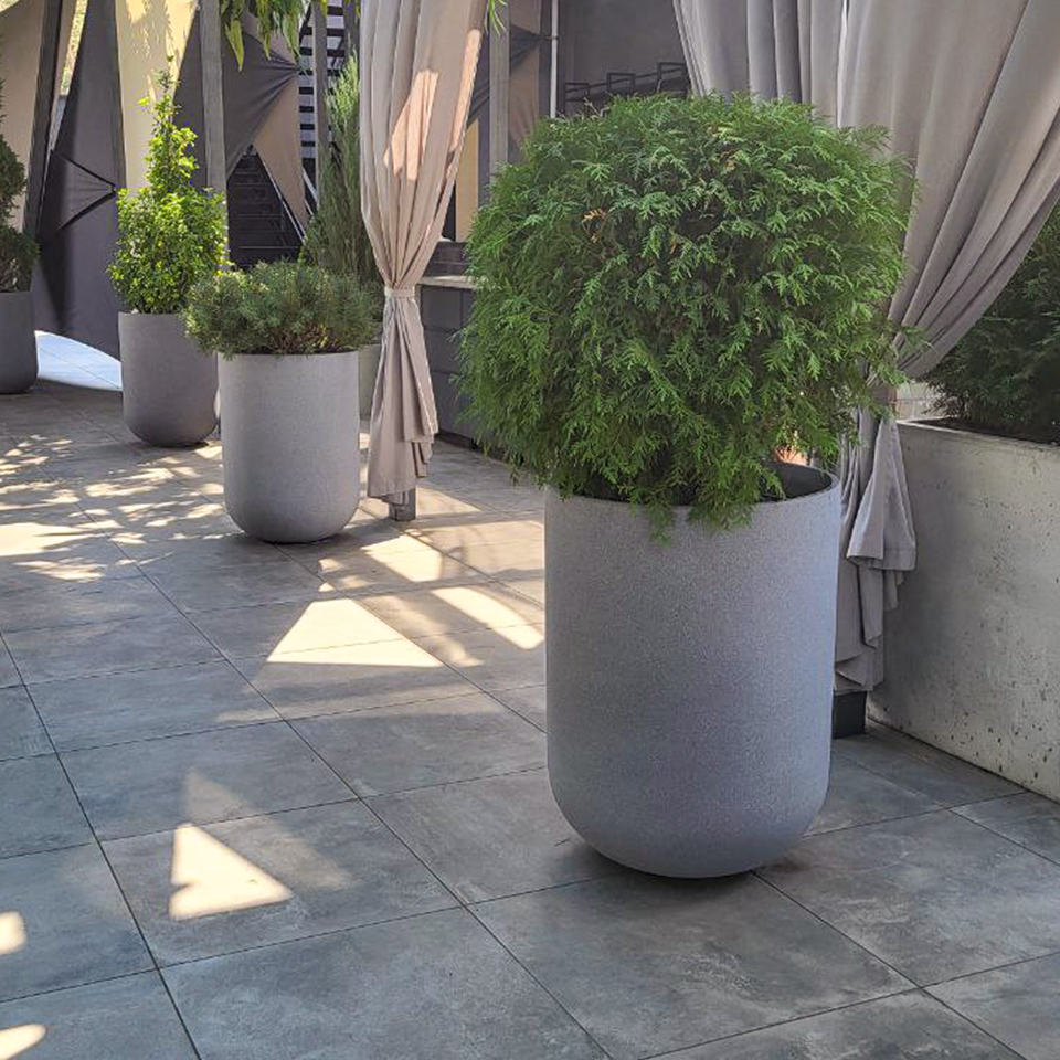 Kvetináč Essen XM je vyrobený z pevného betónu a nebojí sa vonkajších poveternostných vplyvov. Všetky výrobky prechádzajú testovaním v našom vlastnom laboratóriu: kontrolujeme pevnosť betónu, mrazuvzdornosť, krehkosť a ďalšie dôležité vlastnosti. Kvetináč je ekologicky nezávadný a bezpečný pre rastliny aj životné prostredie.