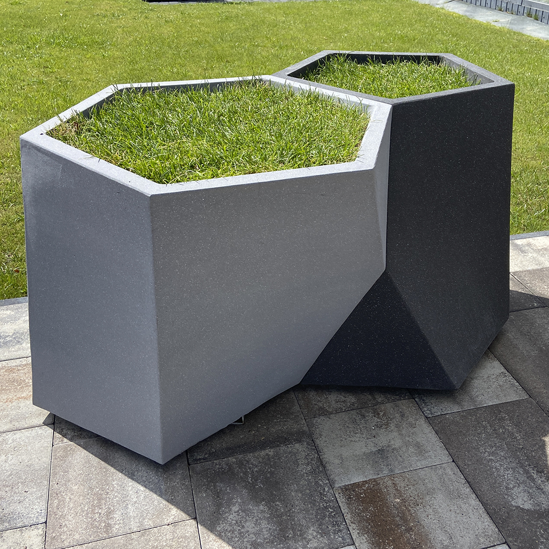 Kvetináče sa vyrábajú s použitím modernej technológie vystužovania pomocou vlákennej výstuže. Táto výstuž je rovnomerne rozptýlená v celom objeme betónu a vytvára mikroštruktúrnu sieť, ktorá: