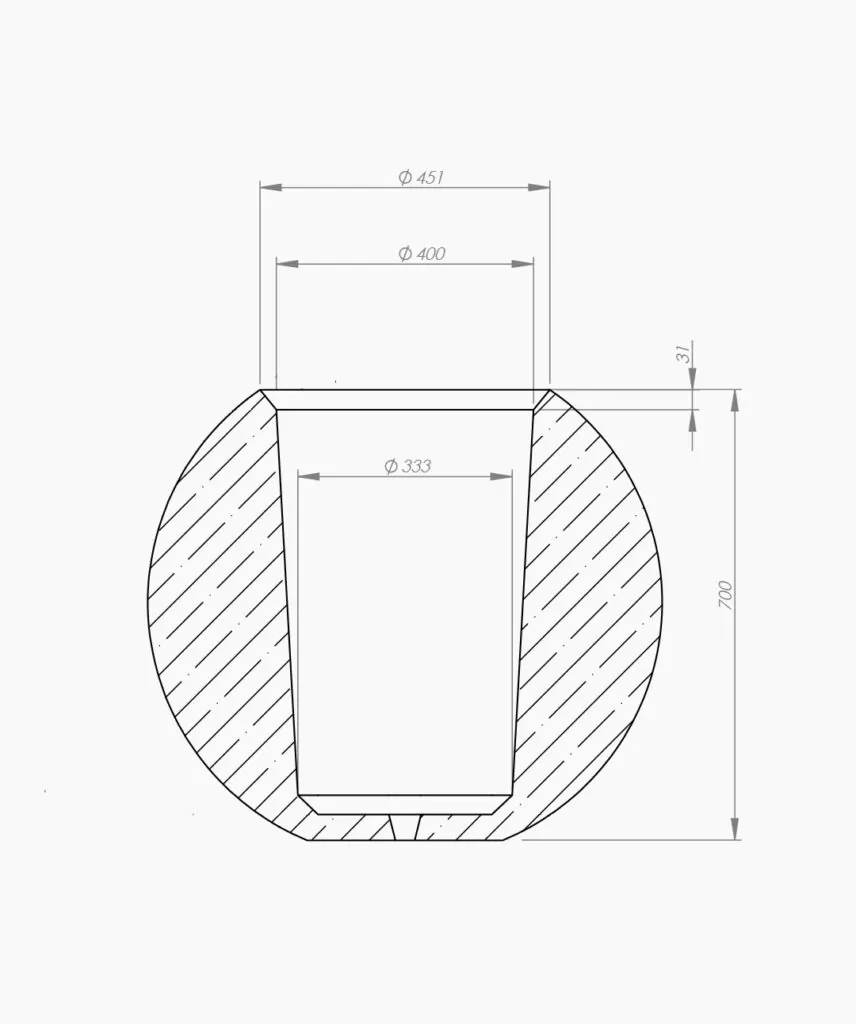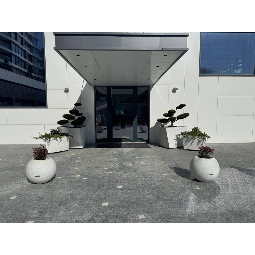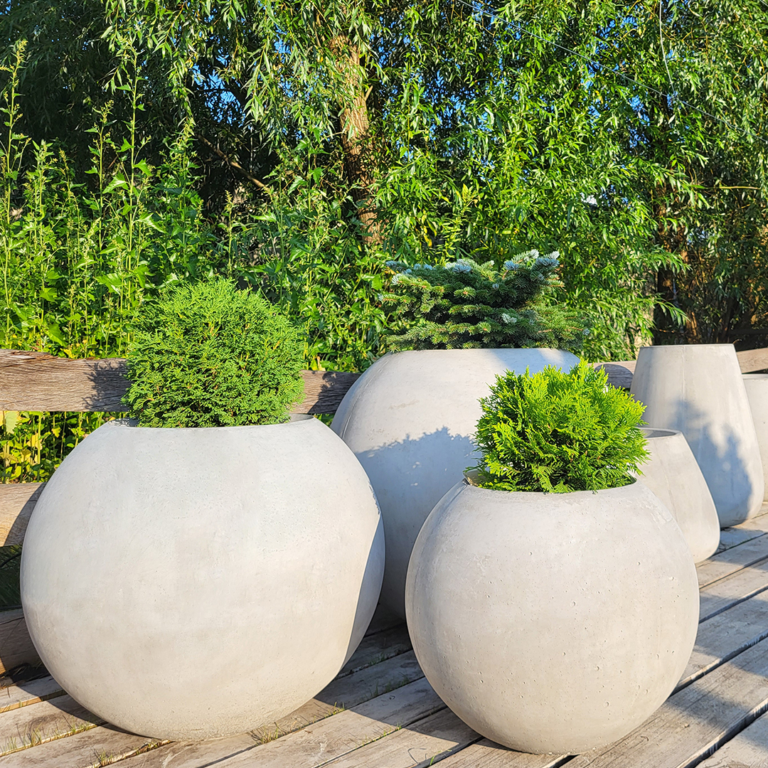 Kvetináč Sfera L je vyrobený z pevného betónu a nebojí sa vonkajších poveternostných vplyvov. Všetky výrobky prechádzajú testovaním v našom vlastnom laboratóriu: kontrolujeme pevnosť betónu, mrazuvzdornosť, krehkosť a ďalšie dôležité vlastnosti. Kvetináč je ekologicky nezávadný a bezpečný pre rastliny aj životné prostredie.